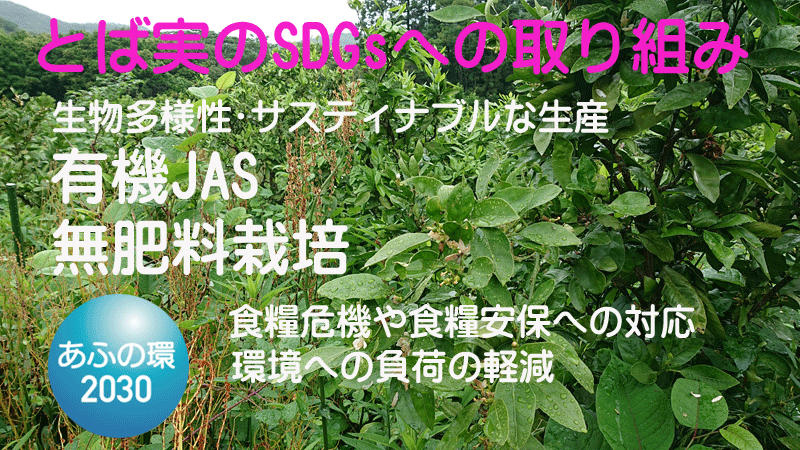 そもそもの大原則として、太陽の光エネルギーがほぼすべてで,これがすべての生物の大本です。 それに水と土と二酸化炭素で植物は育つ。そんな中でみかんが無肥料で育つのはどういう状態か、 私的によく言うのは、生物多様性を実現できた土 と言っておりますが、結局それをより具体的に表すことが 出来ればそれが回答かなと思います。 そこで現在の我が農場の状態では、春からは通常の春草、スズメノエンドウ、紫カタバミ、スイバそれに 稲科の各種雑草などが生えて、今はそれらの春草は枯れてセイタカアワダチソウ、よもぎ、いたどり、さらに蔓草類でヤブガラシ くずなどが大繁茂しています。これまでくずはさすがに繁殖力が強すぎて,できるだけ生やさないようにしていた経過もあります。 これらの植物をみておそらく農業者なら、農作物にとってはジャマな厄介者でしかない雑草です。と言うか、このような草を畑に 生やしているような状態では農業者失格の烙印を押されることは必至です。でも無肥料でみかんを作るためにはこの植物こそ 必要なのです。どういうことかというとむやみに大きくなる。しかもほとんど肥料分を必要としなくて大きくなる。つまりセイタカアワダチソウ(外来種で地上部は大きくなりますが地下部の根っこは比較的小さいのであまり いいとは言えませんが)やイタドリでは6月の段階で2メートル を超える高さまで育ち,ヨモギも他を圧倒する繁殖力で伸びます。ヤブガラシ(秋の花にスズメバチが群がりますので歓迎できないですが)、くず,アマチャズル(ヤブマメかも)など伸び放題です。 中でもくずは図鑑によれば、マメ科のつる性多年草で根は太く大きく大量のデンプンを含んでおり食用になるそうで,関西地方で 作られている葛餅などの原料になります。 つまりこらの厄介者の大きな草は太陽エネルギーから光合成でエネルギー変換をして化学エネルギーとなるのですが。1年生の春草に 比べてエネルギー変換能力が何倍も大きいのではないか。その結果膨大な草とそれに匹敵するほどの根っこが残り、やがて腐植となったり 養分となるのではないかと考えます。かくして土壌は 分厚い生物多様性を実現できた土となり,そこでみかんはすくすくと育つのです。このような膨大な草をいかにみかんと共存させていくかが,栽培上の大課題でもあります。 令和4年7月4日