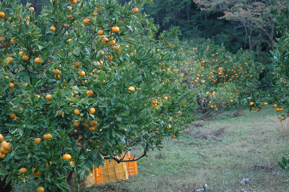 このような栽培を続けますと、果実を完熟状態になるまで樹上に長く付け置くことができるので、甘いコクのあるみかんとなります。